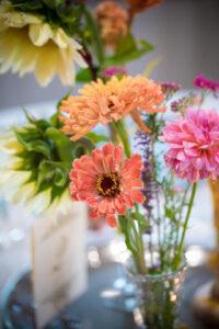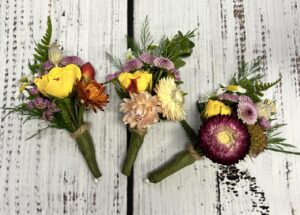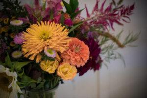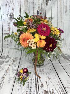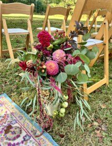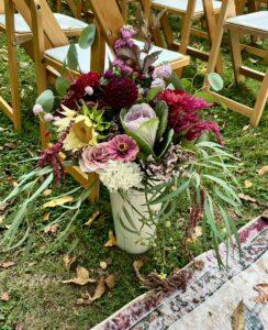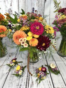 Our floral style is characterized by a whimsical garden vibe that is very colorful. We enjoy incorporating accents like tomato vines, raspberry branches, flowering kales, herbs and other unique attributes into our designs.