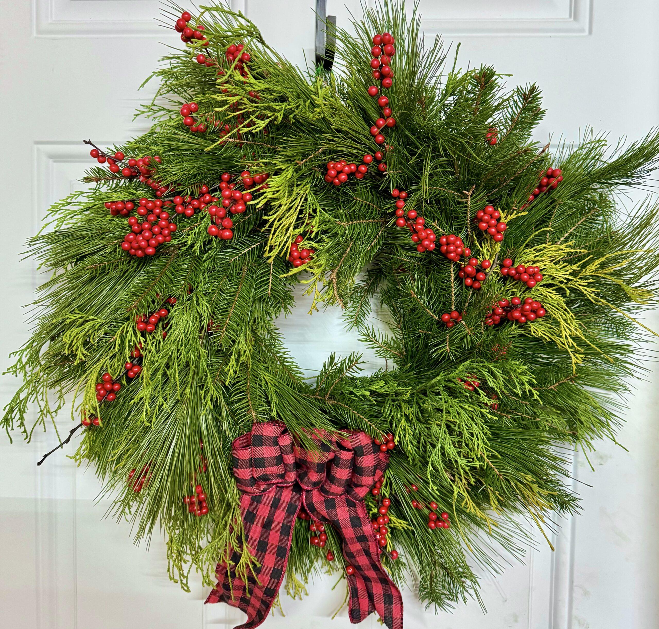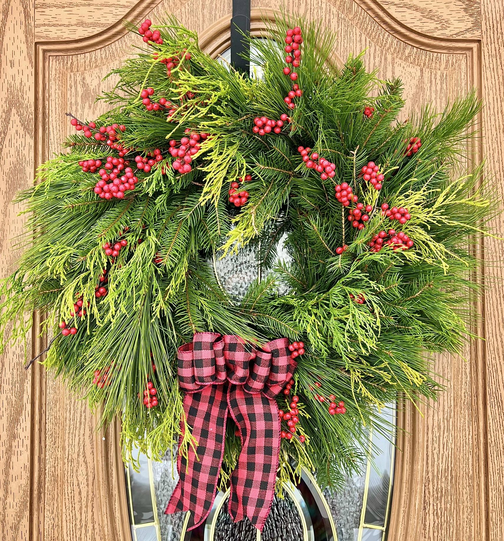 This makes the perfect festive front door wreath for the holiday season!